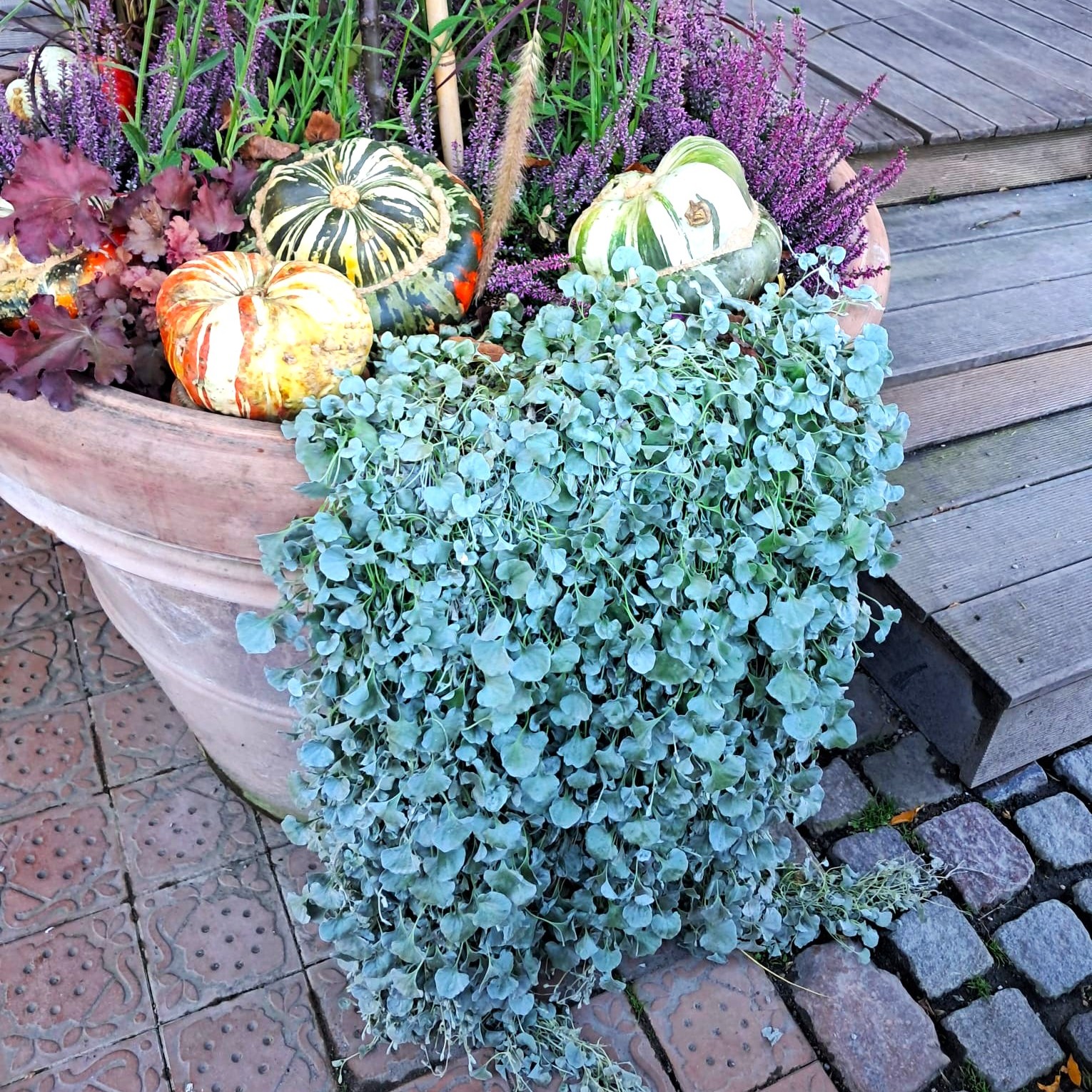 CARACTERISTICI PRINCIPALE: Frunziș argintiu, catifelat, foarte decorativ. Creștere în cascadă, până la 60-100 cm lungime. Textură fină, modernă, luminoasă. Plantă foarte rezistentă la căldură și secetă. Ideală în combinații curgătoare și aranjamente suspendate. Perfectă ca plantă fountain (curgătoare) în mixuri florale.
