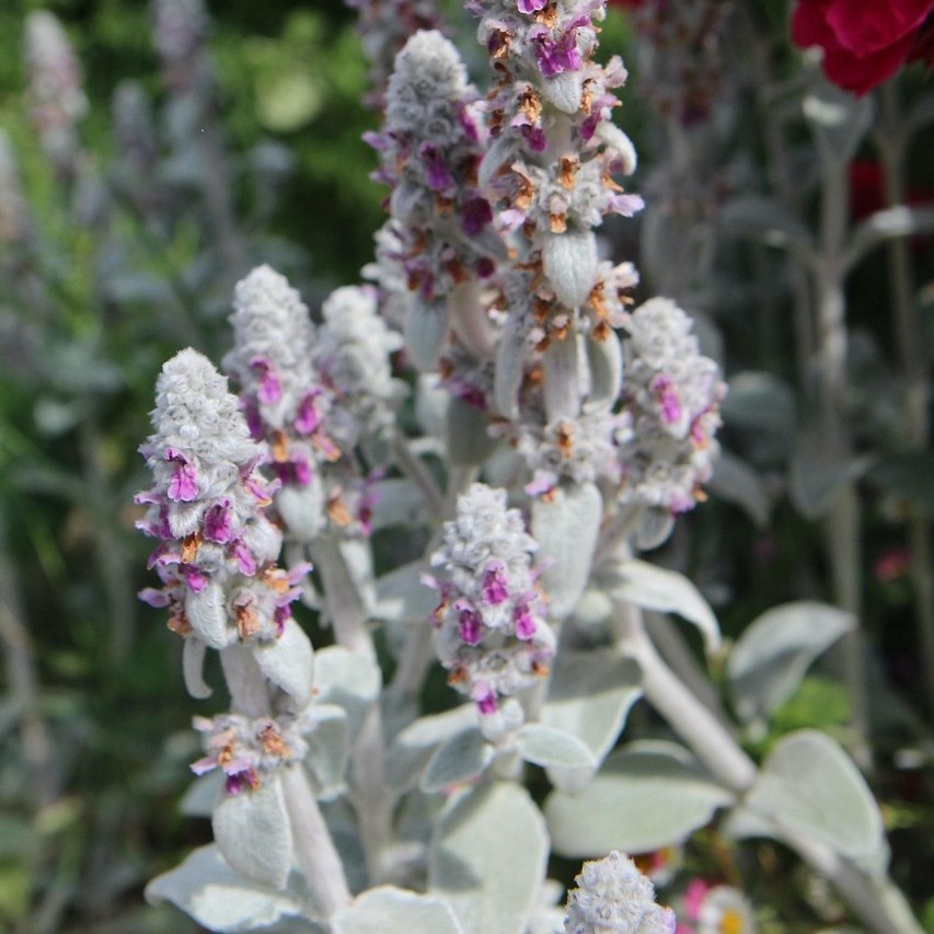 Stachys byzantina ,cunoscută popular ca “Urechi de iepure” este o plantă perenă apreciată în special pentru frunzele sale pufoase, argintii extrem de decorative. Textură catifelată și aspectul său unic o fac să iasă în evidență în orice gradină. Formează tufe compacte și persistente, fiind un excelent acoperitor de sol și un element de contrast în compozițiile florale.
